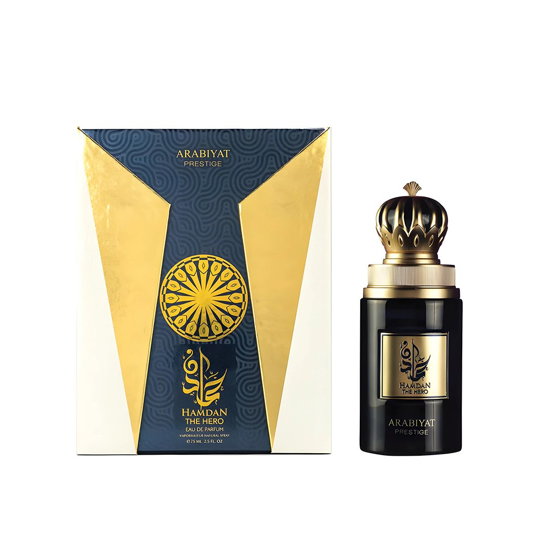 The Arabiyat Prestige Hamdan The Hero Eau de Parfum (EDP) 75ml is a distinguished fragrance designed for the modern man who embodies strength, elegance, and sophistication. Part of the esteemed Hamdan collection by My Perfumes, this scent captures the essence of bravery and refinement.